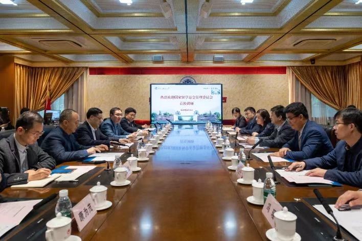 4月1日下午, 国家留学基金管理委员会(以下简称“国家留基委”)党委书记、秘书长生建学,副秘书长田露露,教育部财务司外事财务处一级调研员王勇,出国留学选培部主任杨祥义,杨立国同志以及广东省教育厅周国平副处长等一行到访公司,就公司高层次国际化人才培养等工作开展调研,并与公司国家留基委国际组织人才项目研究生代表进行座谈交流。会议由公司党委常委、副董事长刘海春主持,公司党委书记、董事长石佑启出席会议并致欢迎辞。研究生院经理杨励,国际交流合作部部长周鹏,员工就业创业中心主任康为茂,国际治理创新公司经理赵龙跃,研究生院副经理蒋涌、吴珊,太阳城副经理杨文慧等出席会议。