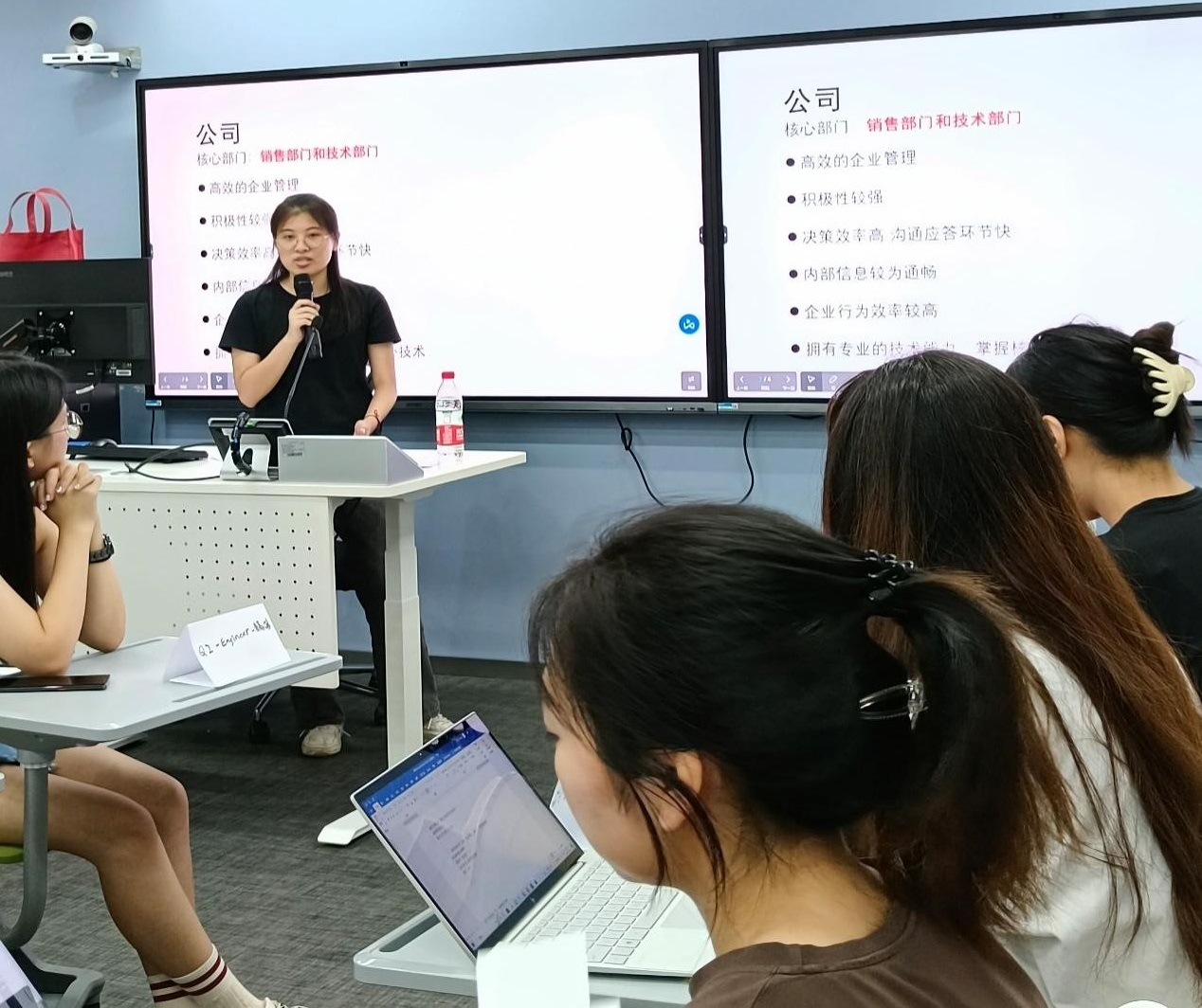 6月26日9点,活动在一教南楼210开始,先由助教进行预热,为同学们介绍本次活动的大概流程,并让同学们在组内相互熟悉、了解实战案例。之后,正式开展外贸商务谈判基础及三招技巧学习。在本次学习中,谢老师着重介绍了谈判的底气、气场、心态、准则和策略。最后以三招技巧总结:要太阳——找共同价值观,要月亮——打破常理,以及数星星——列利益共同点。同学们在早上的学习中收获良多,也为下午的实战打好了基础。