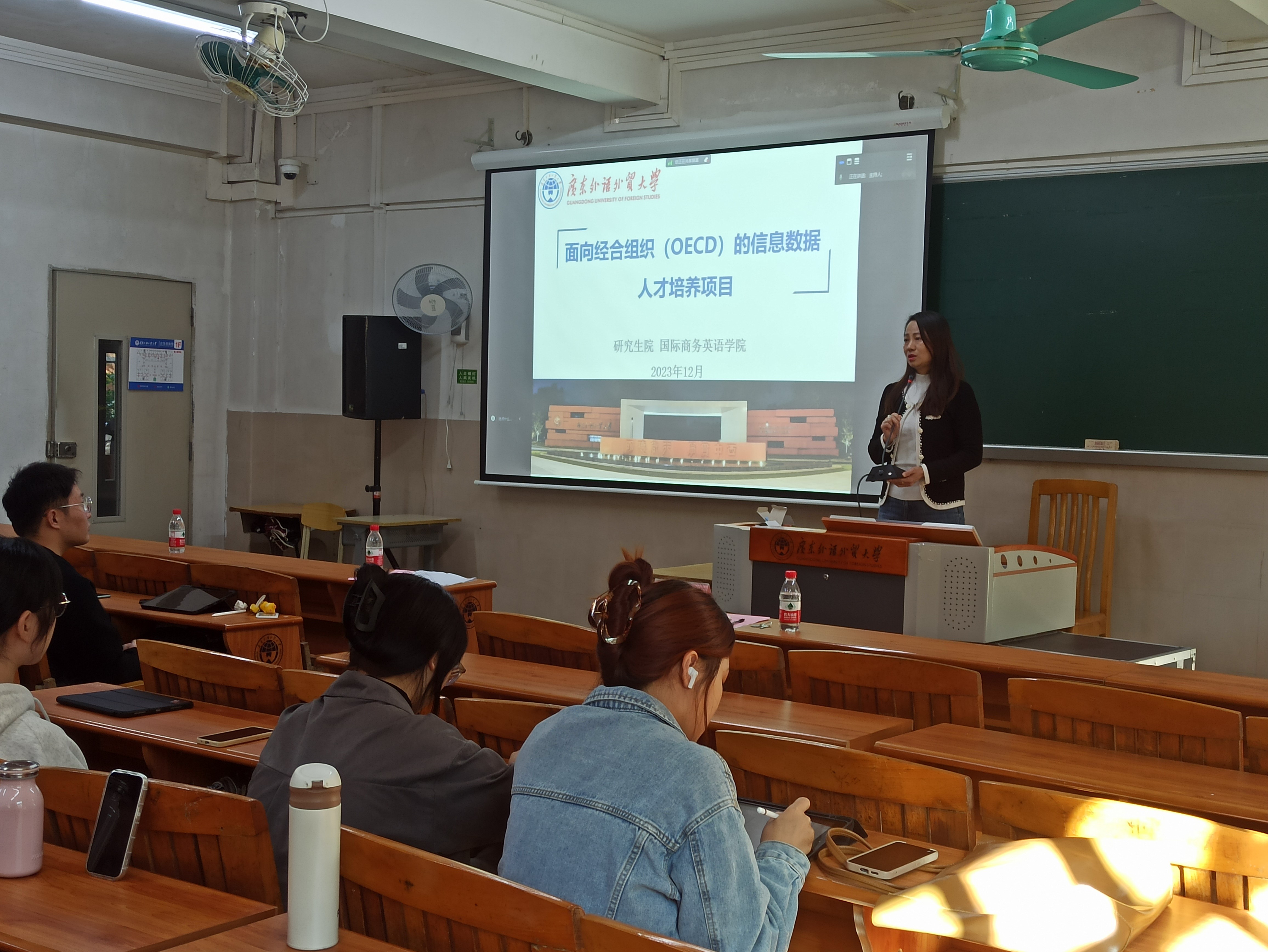 太阳城副经理杨文慧教授从项目背景与培养目标、培养模式、选拔对象和资助办法、选拔方式、选拔人员回国后安排等方面,详细介绍了OECD项目概况。她结合首届学员国际组织实习经历,勉励研究生同学勇于挑战自我,把握机会、积极报考。她强调,项目采用“课程学习-实习实践-就职工作”全链条国际组织人才培养模式,旨在培养从事竞争信息收集以及数据处理的高素质国际化人才。