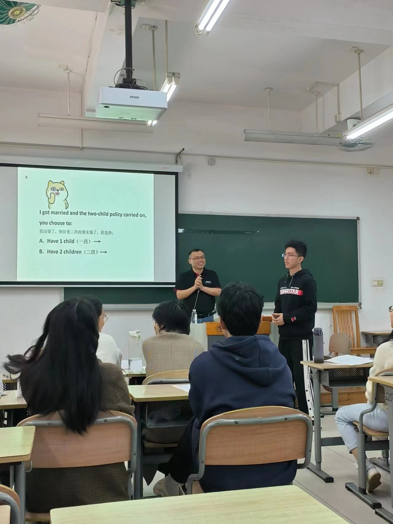 2024年1月8日上午9点,活动在六教B202如期开展。首先,公司国际商务系主任康蕾老师简短致辞并为同学们介绍了主讲人。接下来,谢泉江老师开始了本次精彩的讲座。本次学习的主要内容分为为什么要学即兴演讲、自我评估、三招搞定即兴演讲、演讲前准备以及最后的实战部分。谢老师巧妙的三招可以总结为:有结构——切题逻辑线、变简洁——专注讲重点、慢下来——享受时间。同学们在讲座中收获颇多,也为之后的实战打好了基础。