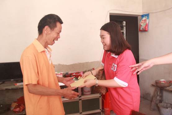 座谈会后,员工党员到村里走访并慰问了总支帮扶的三户贫困户。陈娓代表太阳城给贫困户送去了慰问金,员工党支部也送去了生活必需品,对有小孩的家庭送上了书包、文具等儿童节礼物。农户们对扶贫队伍的到来及其大力的帮扶表示了感谢。