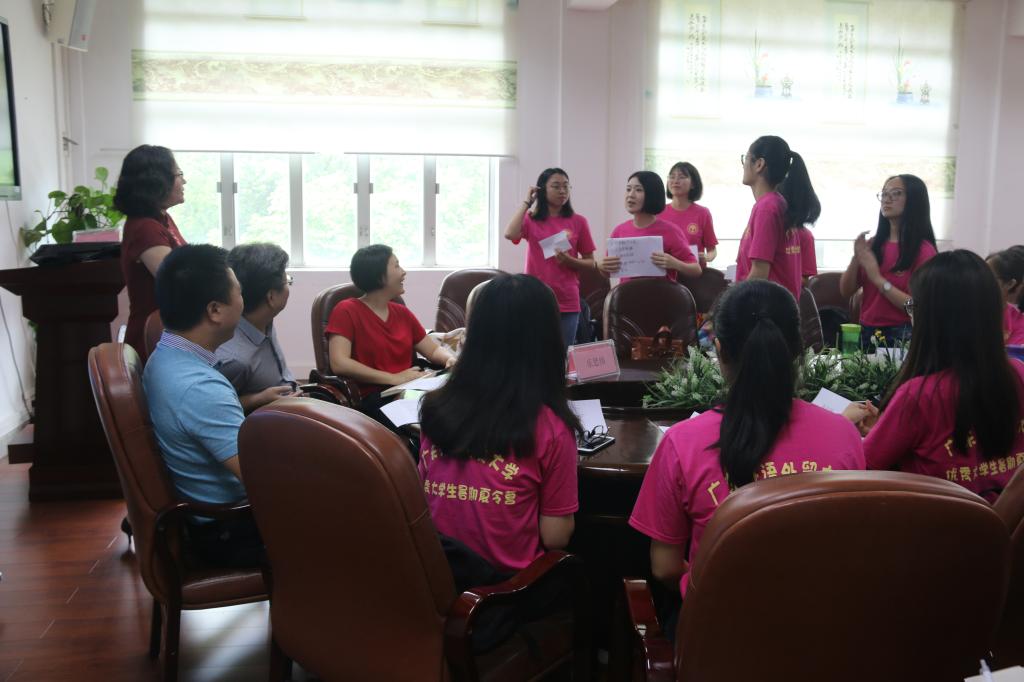 28日上午,公司经理郭桂杭与学员们探讨商务英语的发展前景,紧接着是对学员们的综合测评,包括上午的个人面试和无领导小组讨论,以及下午的学业汇报及成果展示。个人面试环节由胡春雨教授、吴易明教授、蒋涌教授担任评委,主要考量的是学员们的学习能力、面试能力和心理素质等方面。学员们都认真准备,力争取得优异成绩。无领导小组讨论环节中,学员们针对决策两难的情境,进行了充分的思辨性讨论。下午的成果展示环节中,学员们用英文逐一汇报了各自在整个夏令营活动期间的感悟与收获,也收获了评委们认真详细的点评。